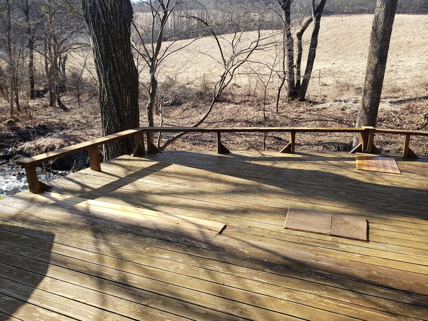 さてお仕事ですが朝一番で築約20年、北軽井沢S邸様フィンランドログハウスのお宅に行ってきました。 内容は土地から川が眺められるテラスの解体+作り直しです。 常に雨風にさらされるテラスなので床材は継ぎ接ぎだらけなので工事のお声をかけていただきました。