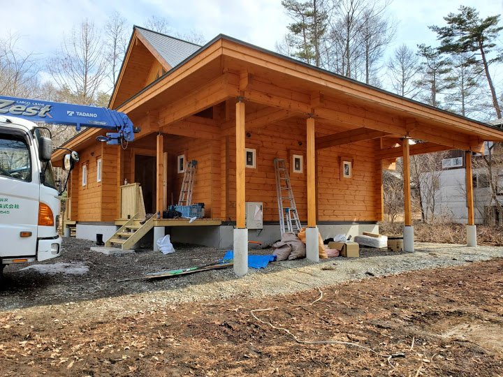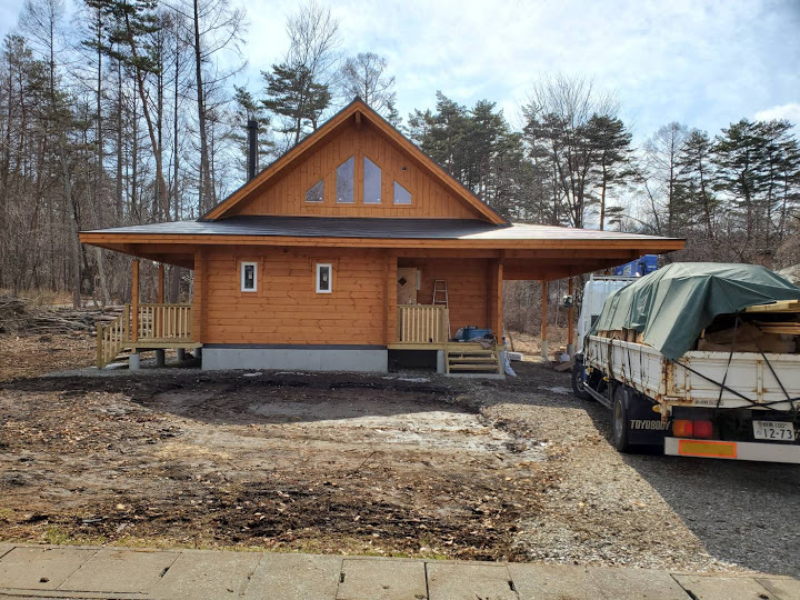 さてお仕事ですが長野県茅野市N邸様は完成が近づいてきました。 本日山崎さんが残りの塗装工事と外部の片づけ仕事頑張っていただきました。