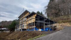 4月後半から5月には島根県隠岐の島にて建設屋さんの新社屋を弊社ログハウスキットお選びいただきました!!