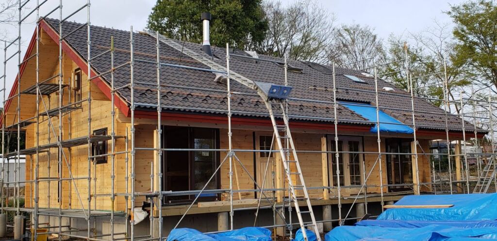 さてお仕事ですが山中大工さんから栃木県下野市O邸様造作工事写真がラインで届きました。 屋根瓦工事はほぼ完了となってきていますね。
