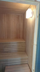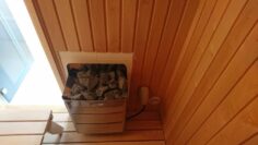 さてさてお仕事ですが群馬県草津町M邸様フィンランドログハウスの完成お引渡しの準備が整いました。 昨日は薪ストーブ設置工事、サウナ室にHARVIAの電気サウナストーブも取り付けられました。 HARVIAのサウナストーブはログ材と一緒にコンテナで海上輸送してきましたよ! サウナ石ももちろんフィンランド製! 200Vの電気にて稼働します!!