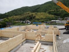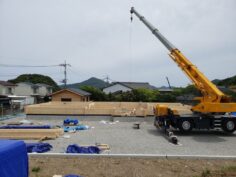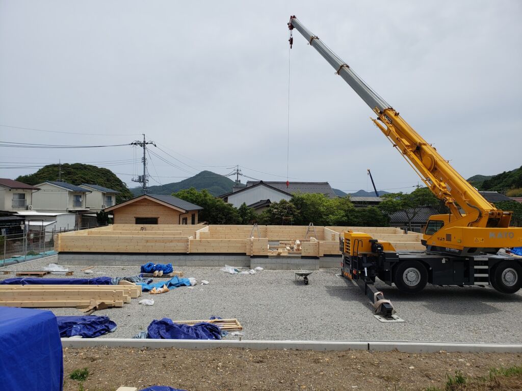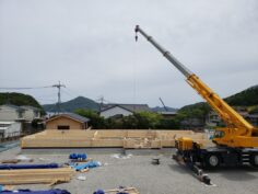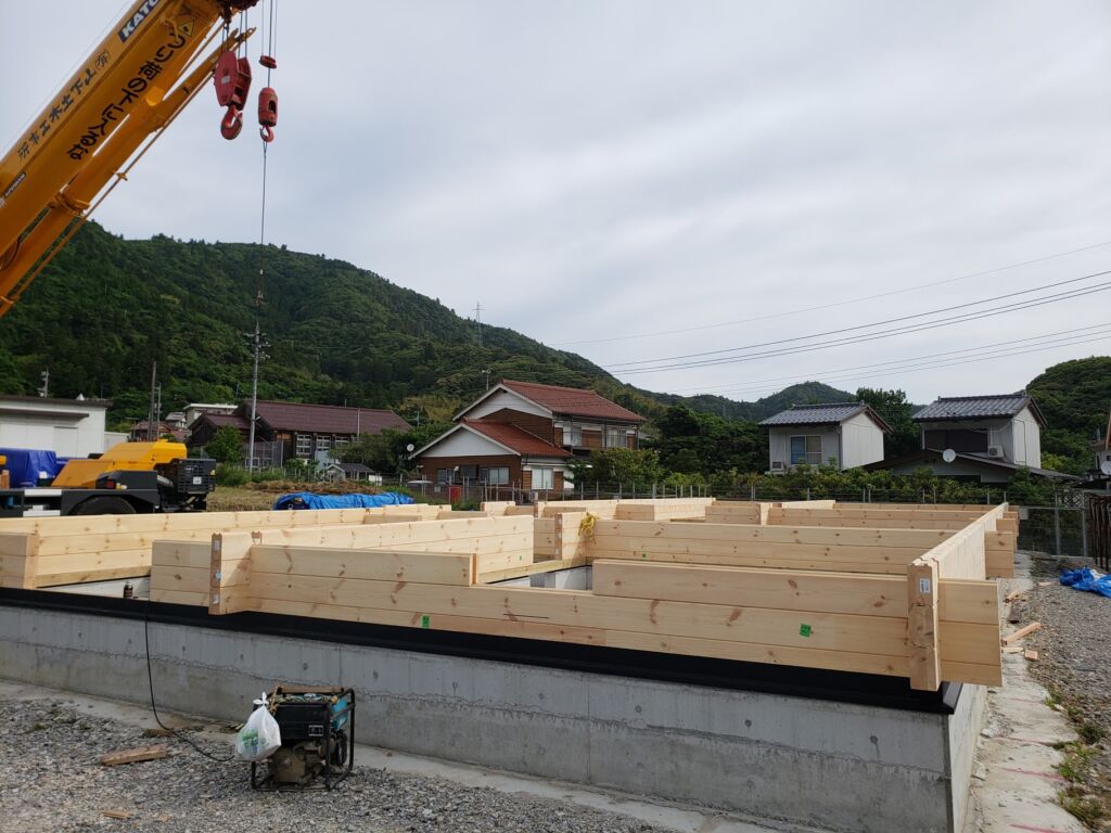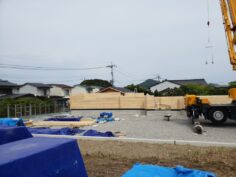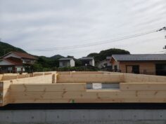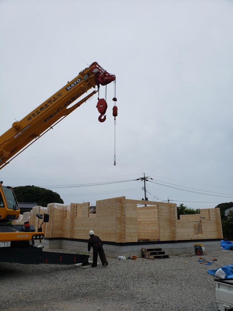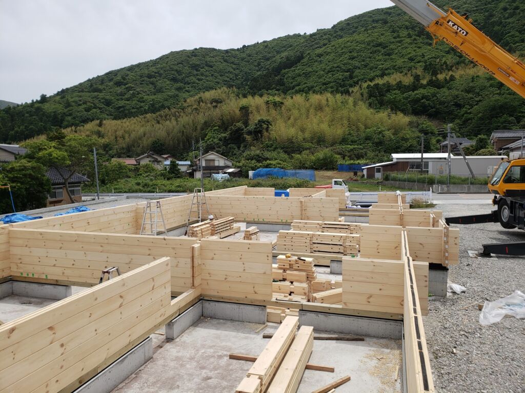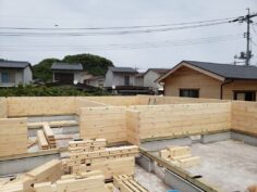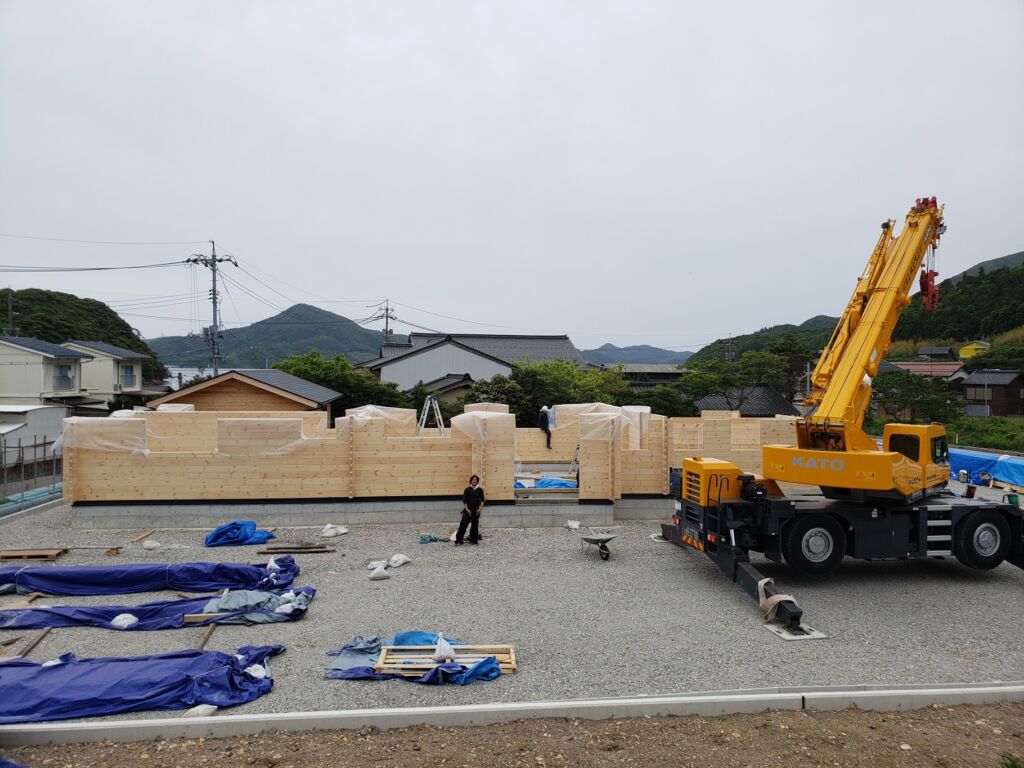 島根県隠岐の島 山下土木様新社屋のログハウスキット搬入!!