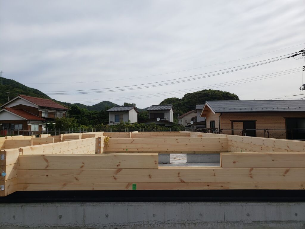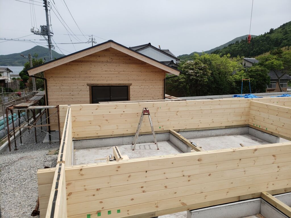 今週は月曜日の夜から島根県隠岐の島に来ています。 島内の山下土木様の新社屋に弊社ログキットを選んでいただき、納品、検品、建て方のお手伝いにきています。 「当初は3段ぐらいまでのお手伝い」の予定できてましたが、かなり作業は進んで昨日までで12段まで積み上げることできましたよ。