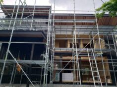 昨日は私は軽井沢H邸様現場にて電気工事の逃げ配線工事してきました。 土屋大工さん頑張ってもらってまして2階は大分形になってきましたね。 外部はマサヤ大工さん中心にチーム高原にて先週形になりました。
