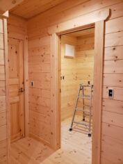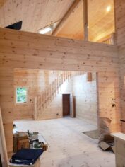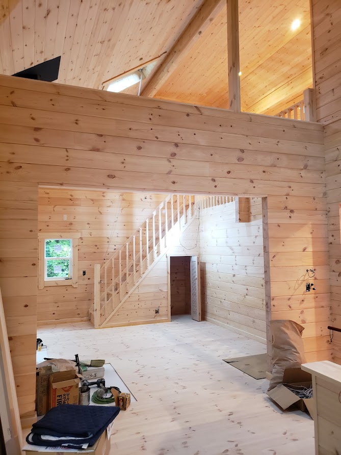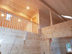 さてお仕事ですが北軽井沢O邸様ログハウスは完成に向けて進めております。 大工造作工事が終わり滝沢さんが電気工事、山崎さんが床塗り工事進めています。