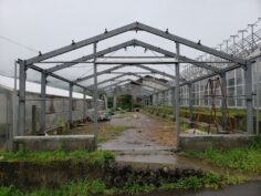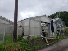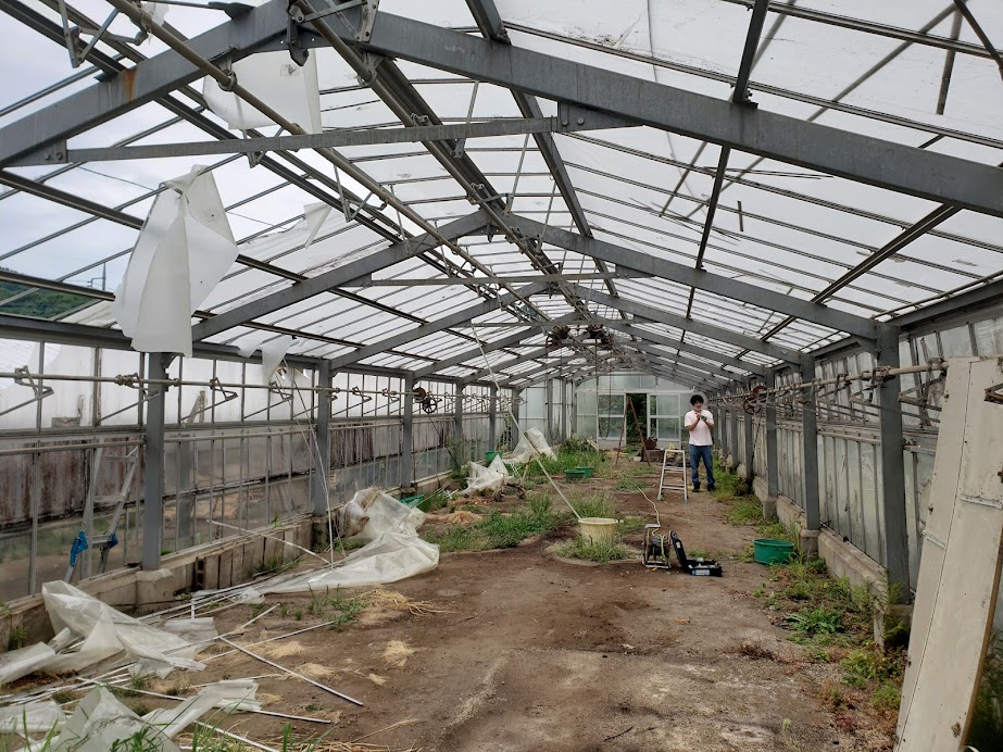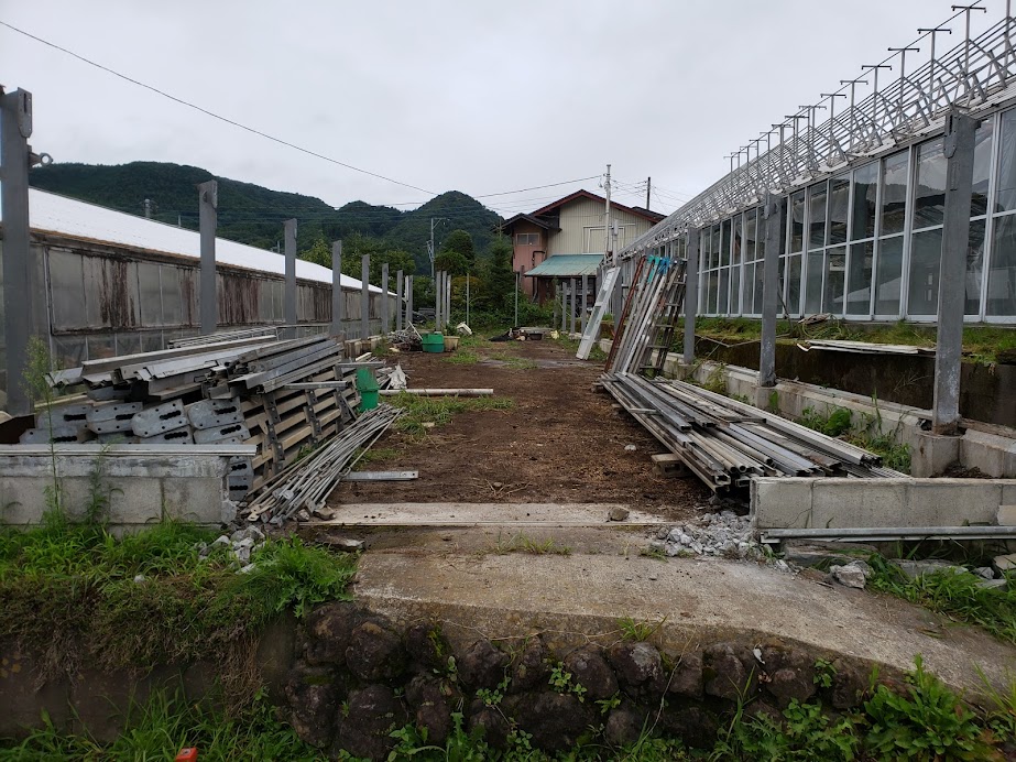プライベートですが少年野球の室内練習場計画がありまして「どこかに要らないハウスがないですかね~」と義兄さんに話したところ話をもってきてくれまして築40年の鉄骨ハウスを解体条件有で譲ってもらいました。 本当に立派なハウス。 間口5.4mで長さ30mになります。 ちょっとしたノック、マシン練習、ピッチング練習、素振り等にもってこい!! 忙しくなかなか手付かずでしたが8月に入って解体初めまして昨日でいいところまで解体できました。あと1日あれば解体できますよ!