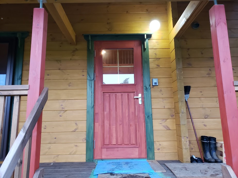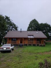 さてお仕事ですが、栃木県下野市O邸様新築ログハウス工事完了しましてお引き渡しさせていただきました。 15日の日曜日に行かせていただき残工事対応させていただき最終確認していただきました。 O様がセルフで造作予定だった勝手口のテラスも時間があったので一緒に共同作業で短時間で形になりました。 あとはO様にテラス材をビス締めしてもらいましょう!!