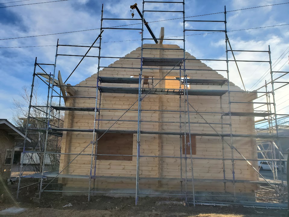 ログ積完了。 垂木掛け始めました!(工務店さんのお手伝い)