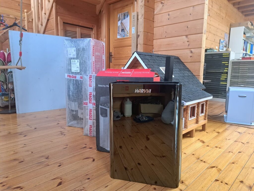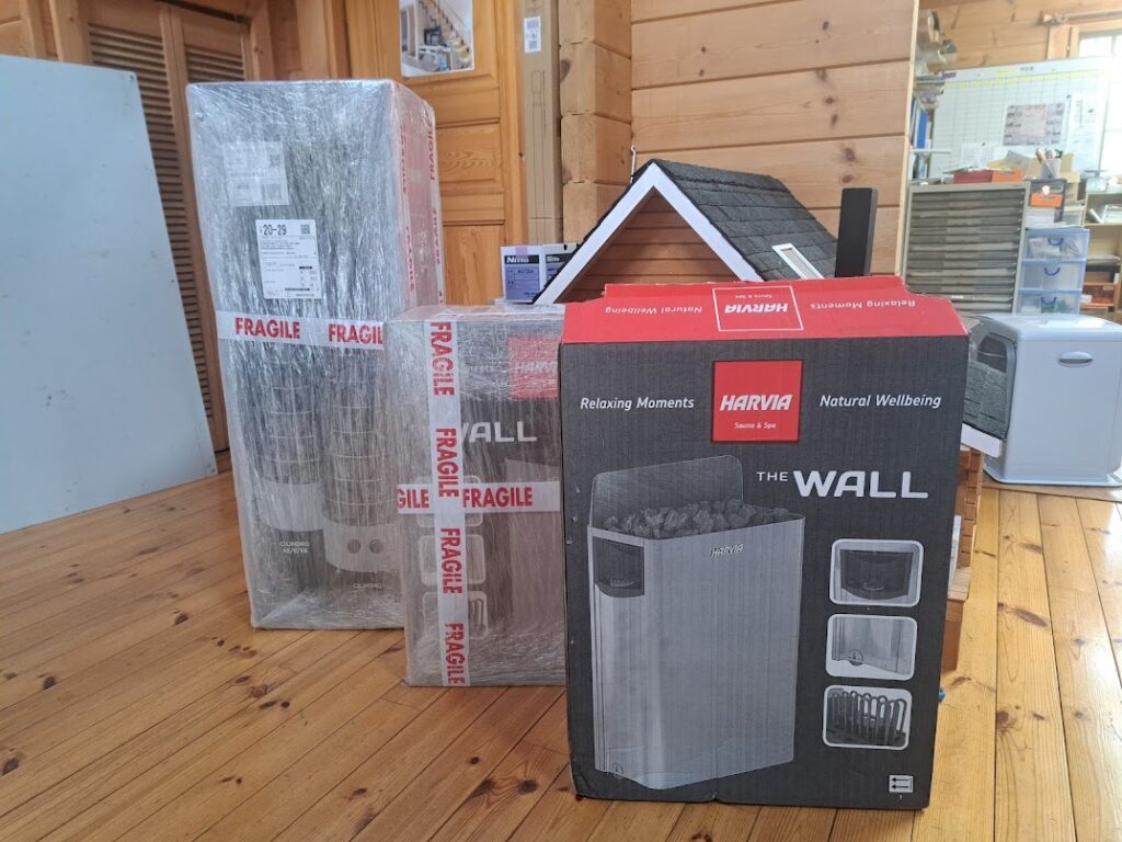 先日は北欧から平行輸入したハルビアのサウナが3台入ってきました。 2台はTUNTURIさん分、1台はM邸様分になります。