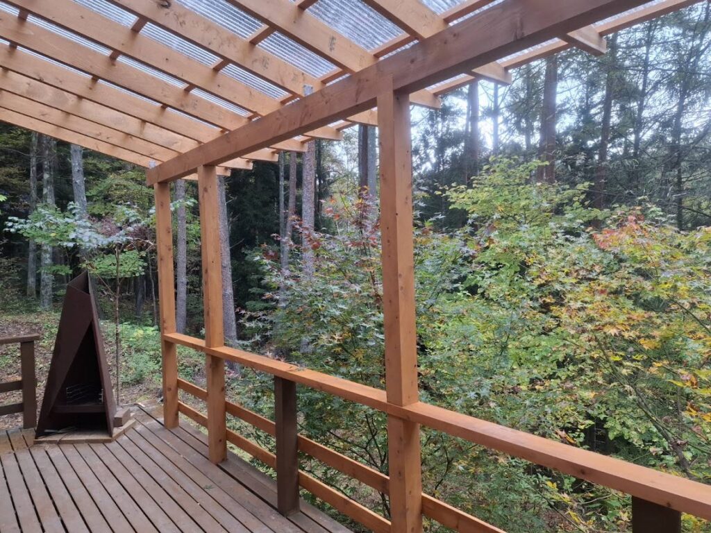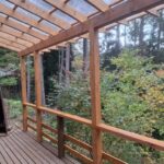 弟のマサヤ大工は長野県佐久市(旧望月町)にて2011年に離れのログハウスを建築させていただいたY邸様テラスにポリカ屋根をかける工事を依頼されて昨日完成しました。 ポリカだったら日も入るし耐久性もまあまあです。 結構テラスに屋根をかけてほしいという依頼も多いのでポリカかアクリル板を選んでいただくこと多いですよ。