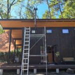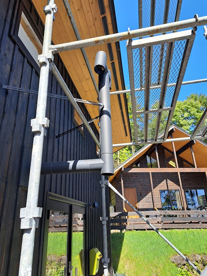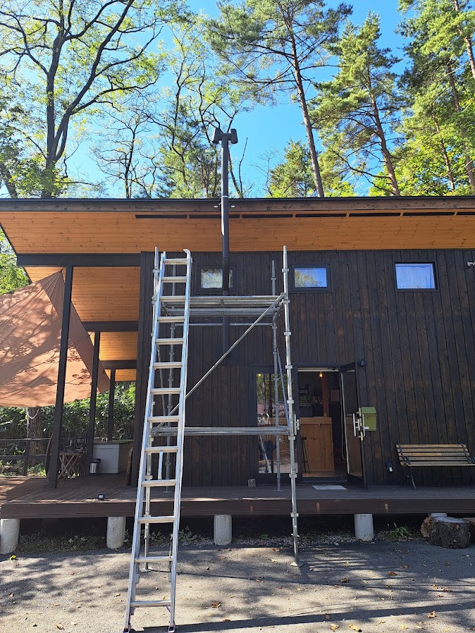 さて昨日のお仕事ですが、草津町で2年前にお世話になった宿泊施設「TUNTURI SPA&STAY」さんに行ってきました。 北欧スカンジナビアスタイルの家づくりでオシャレなつくりですよ。 宿泊棟は2棟で入口部分に管理棟があります。 昨日は管理棟のストーブの延長工事にいってきました。 昨日までは煙突の立ち上がりが軒より短かかったので煙が軒にあたって汚れてしまうというデメリットがありましたが写真のように工事して屋根より1m伸ばして工事完了!! イメージしていたとおり段取りよく工事ができたのでいい気分になりましたね。 段取りのときイメージしていた工事内容とばっちり合ったときはホント嬉しいもんですよ。