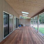 テラスも写真のように広々して屋根もかかっています。 ここではピッチャー練習もできるほど用途多様に利用することもできますね!。