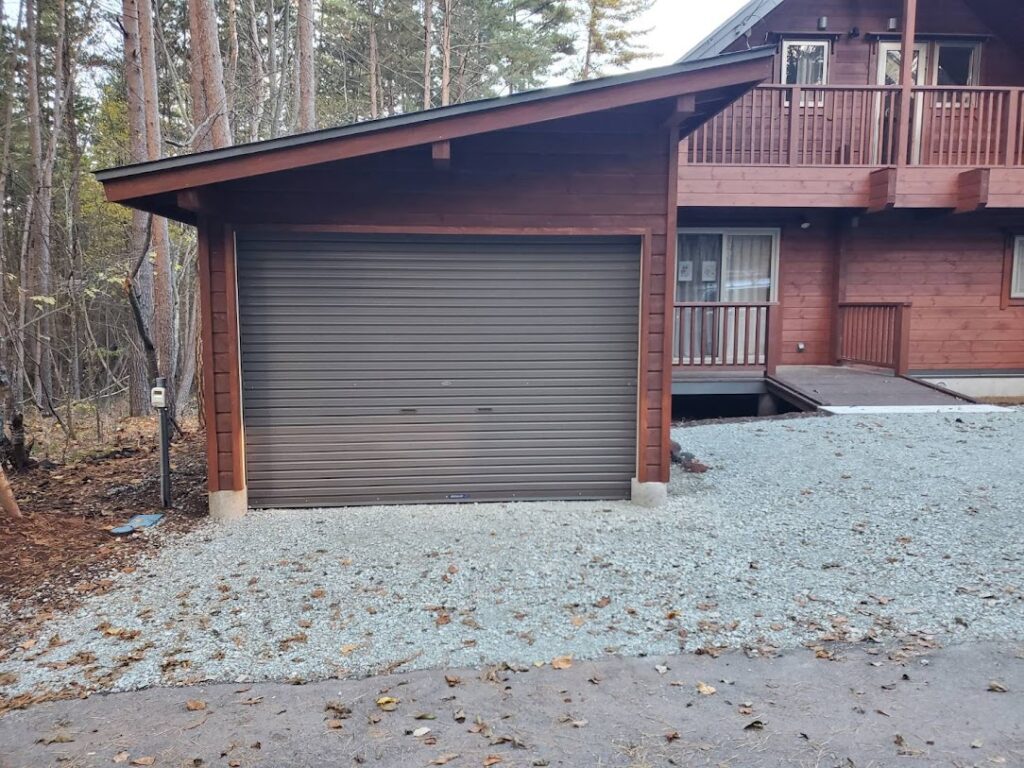 浅間高原にて依頼されておりましたM様の車庫工事も塗装工事、シャッターもつきばっちり完成。