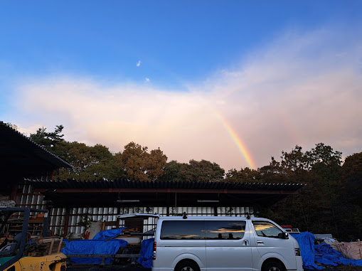 土曜日夕方倉庫にて作業していると虹が! 少し幸せな気持ちになりました。