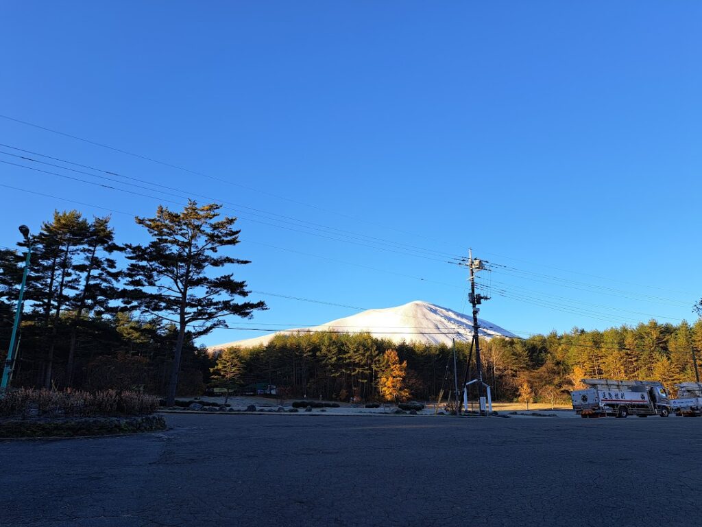 いつもなら帽子をかぶるように頭が少しだけ白くなっている感じですが、今年は初冠雪か浅間山全体を覆うように降りましたね。 東御市から来ていただいている大工さんは「湯ノ丸峠が真っ白でノーマルタイヤだったんでかなり怖かった」と話してました。 今週ぐらいにタイヤも交換して冬対策しっかりしていきたいと思いますよ。