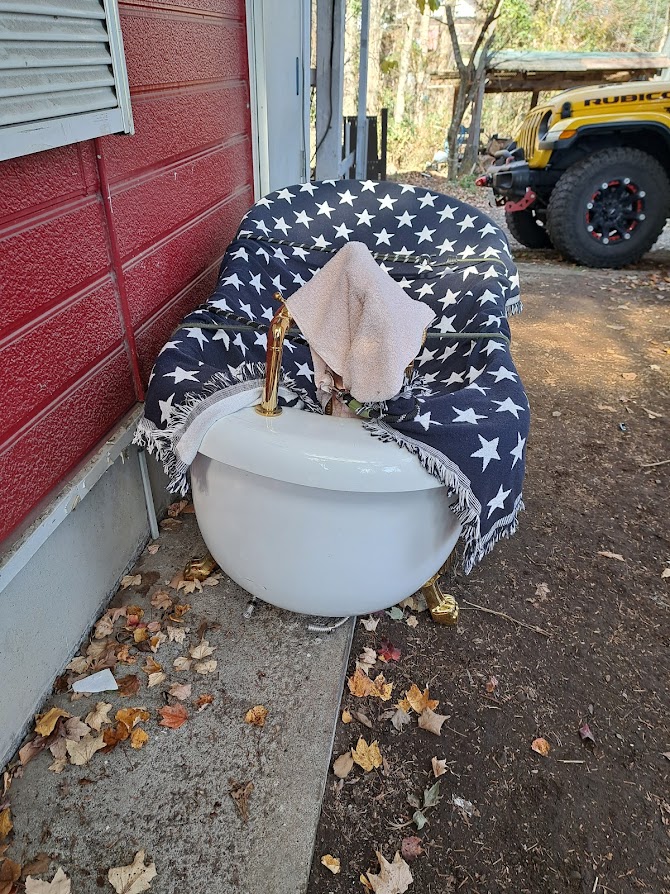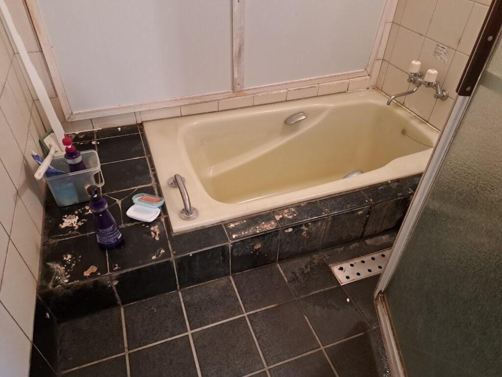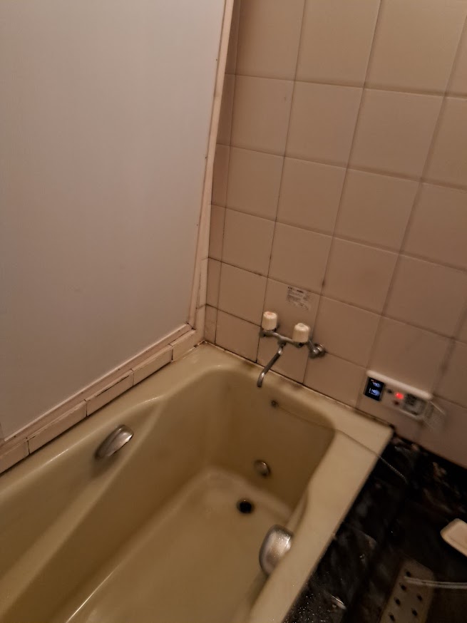 さてお仕事です不動産屋さんから紹介されたお客様で浅間高原でリノベーションを予定しているとの事で日曜日にお伺いさせていただいた内容です。  お風呂のリノベーションがメインで今ある造作風呂を解体してお客様が用意した猫脚のバスタブを置けるようにしたいとの事。 壁タイルも嫌なので剥がしてから断熱→バスパネルの工事ですね。浴槽はとって床をフラットにしてタイル以外の差材で。 との内容でした。
