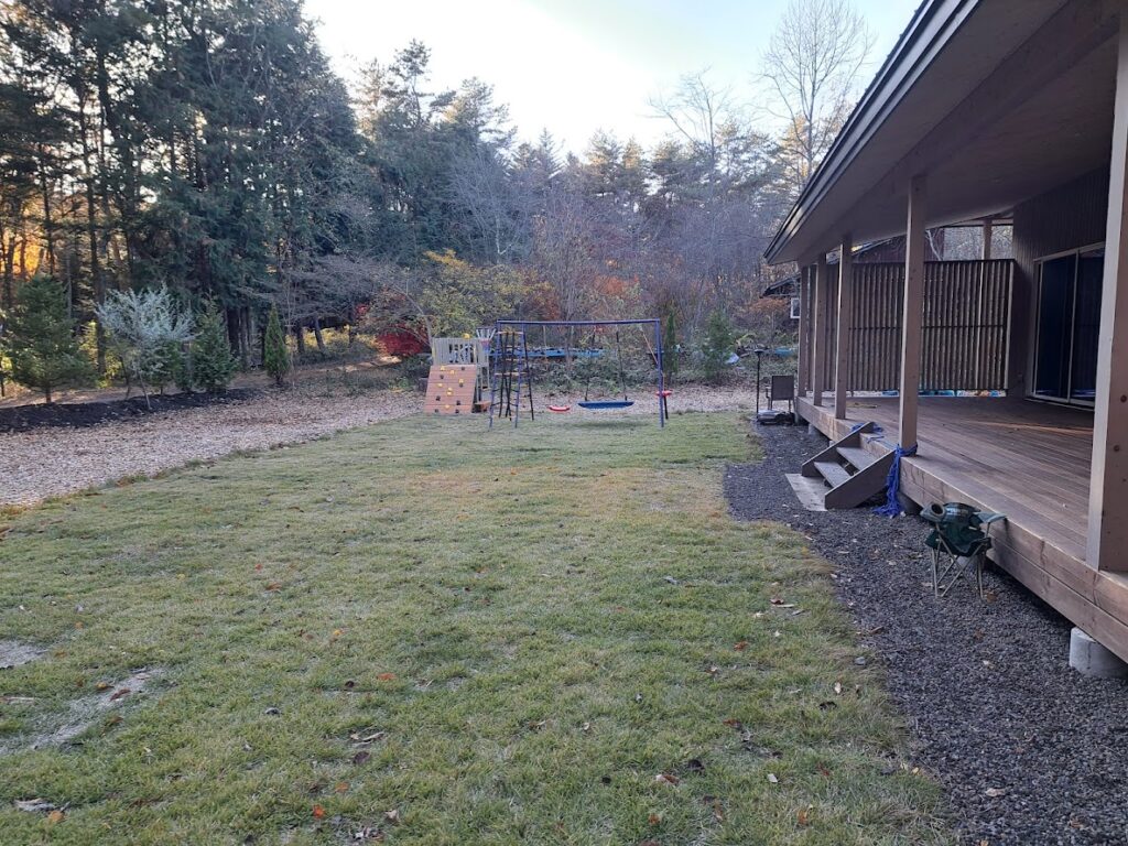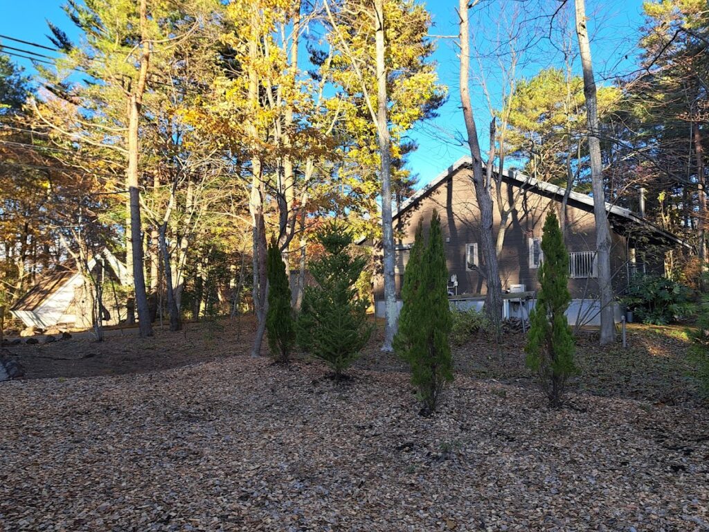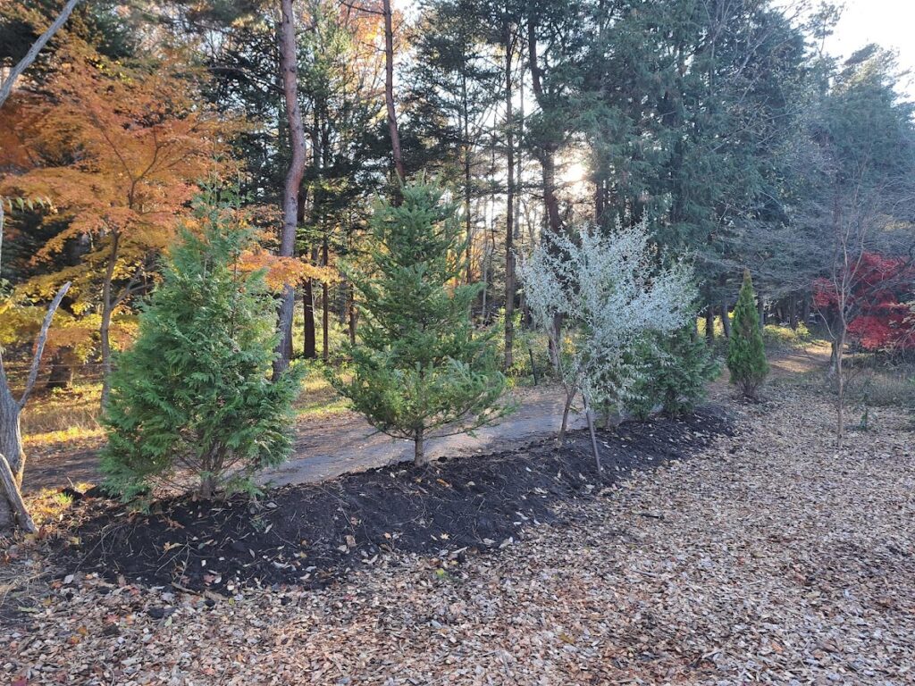 さてお仕事ですが軽井沢にて建築させていただきましたK邸様の植栽工事が終わりました。 目隠しとしての植栽工事なので常緑樹がメインの植栽工事となりました。