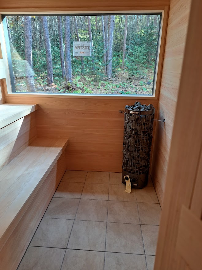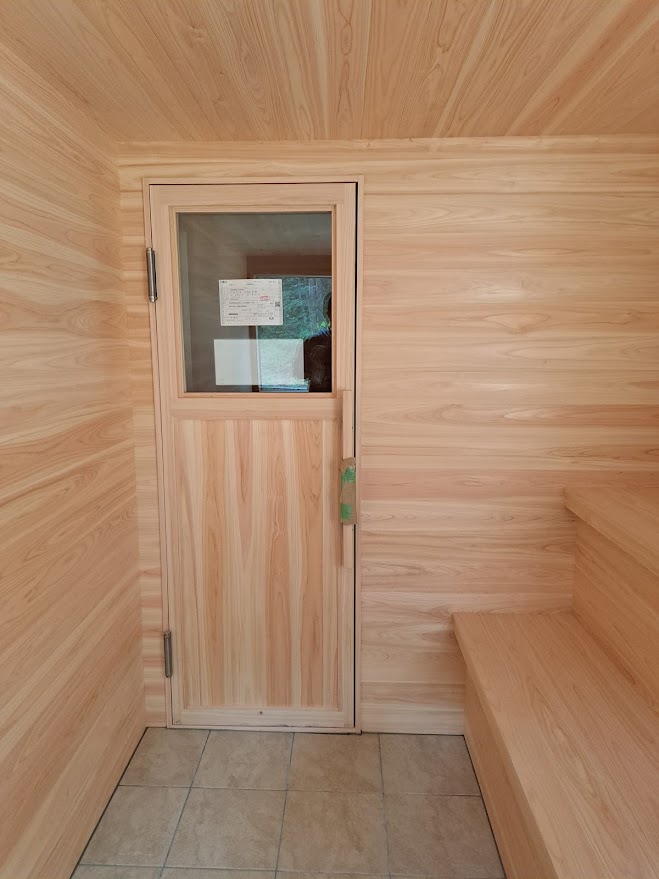 さてお仕事ですが浅間高原にて建築中のM邸様のサウナ室が完成しました。 すべて大工さんの造作工事のサウナ室になりますよ。 広さは約3.5畳で容積は11.4㎥になります。 サウナドアは山中大工さんによる造作ドア。 サウナ室を温める機器は先日ブログで紹介した並行輸入したHARVIAのCILINDRO PC90の9KWのサウナストーブになります。サウナ石はアマゾンから仕入れたNARVIのサウナストーンが4箱80キロを円柱のサウナ機器に入れ込みました。