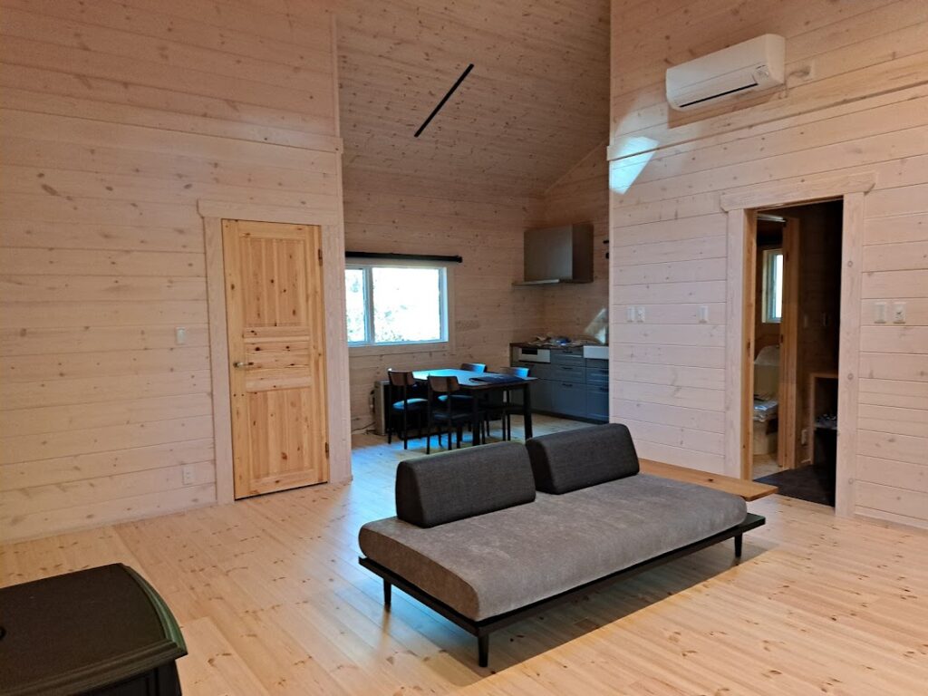 さてお仕事ですが浅間高原にて建築中のMOdel-M邸様のログハウス新築工事も完成に近づいてきました。 室内の工事は終わっておりましてM様先行で家具の搬入をしています。