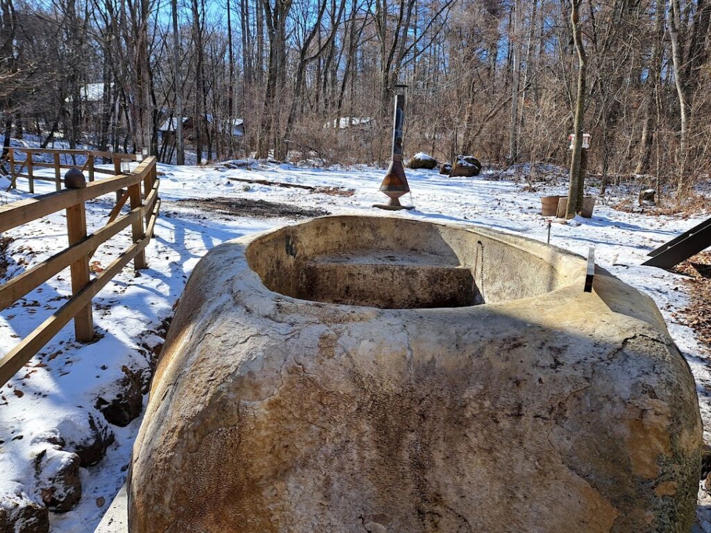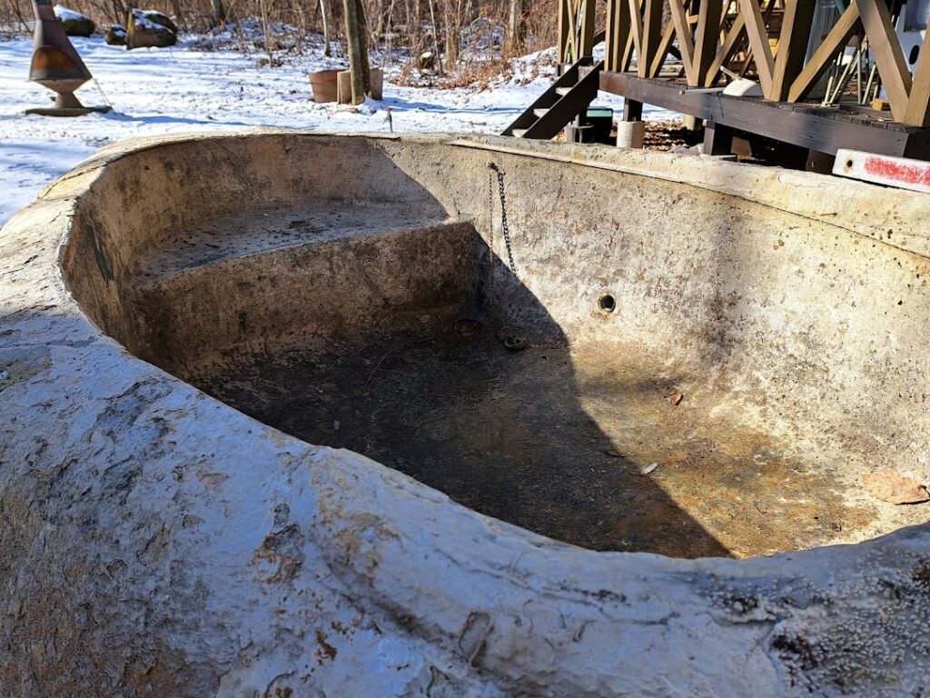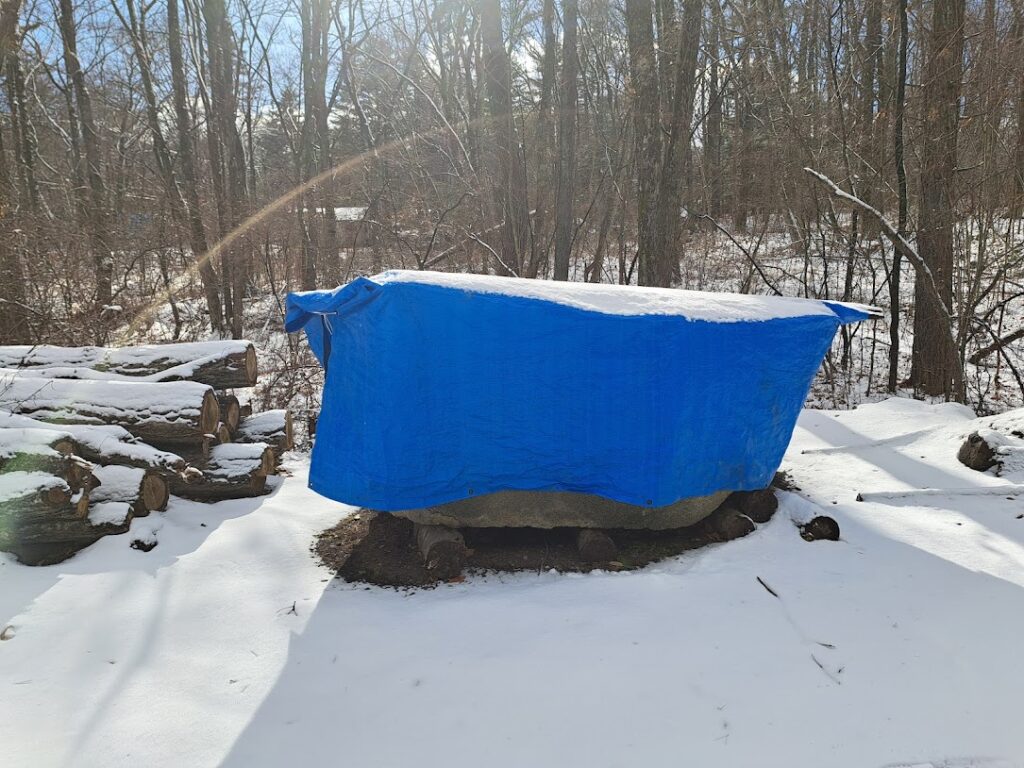 さてお仕事ですが火曜日に貸別荘を営んでいるお客様から依頼されておりました7tの石風呂の移動、設置工事をしてきました。