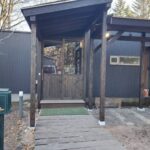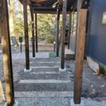 お仕事ですが山崎さんの仕事で軽井沢にて車庫のご依頼をうけて倉庫での刻みから昨日建て方、塗装工事が完了しました。 車庫からの玄関までのアプローチも屋根がけしまして、車降りて玄関まで雨雪に当たらなくてもよい設計となっております。