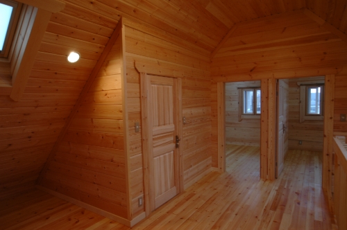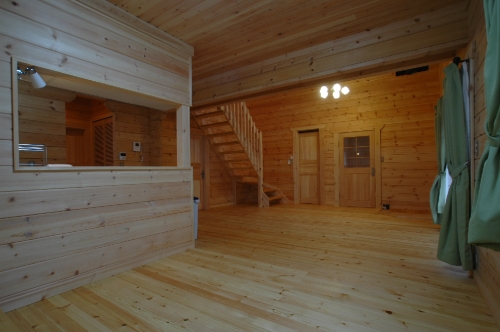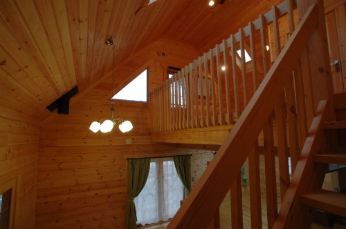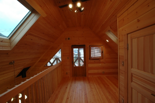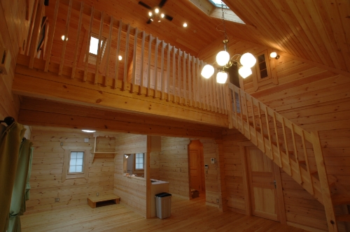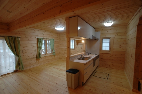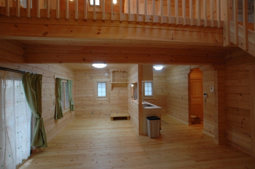 LOGHOUSE DATA Modei-Y邸 ●使用目的=住宅 ●所在地=群馬県高崎市上中居町 ●延床面積=----㎡[1階=----㎡、2階=----㎡、デッキ・ベランダ=----㎡] ●使用ログ材=シベリアパイン(中国加工)115×180㎜ラミネートログハウス ●着工=2011年3月 ●完成=2011年6月●外部仕上げ=[屋根材=ガルバニウム鋼板 / 塗料=キシラデコール2回塗り / 基礎=H=600㎜ベタ基礎 ] ●間取り=KH31-Nアレンジモデル