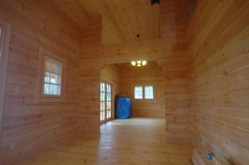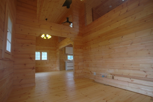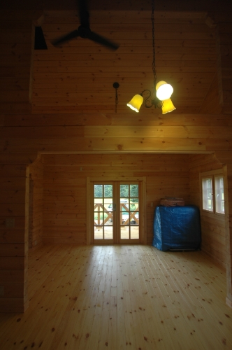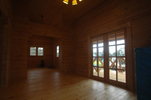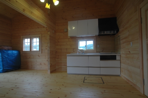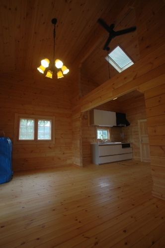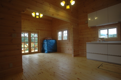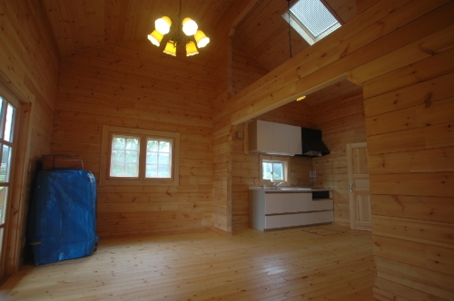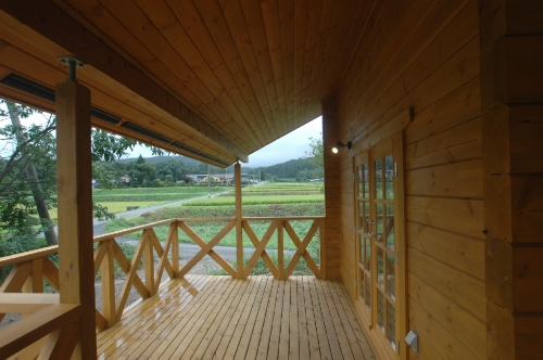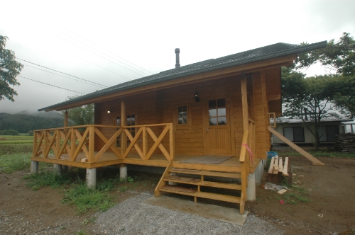 Modei-I邸 ●使用目的=別荘 ●所在地=長野県上伊那郡飯島町 ●延床面積=56.14㎡[1階=----㎡、2階=----㎡、デッキ・ベランダ=19㎡] ●使用ログ材=シベリアパイン105×175㎜ラミネートログハウス ●着工=2011年8月 ●完成=2011年10月●外部仕上げ=[屋根材=ガルバニウム鋼板 / 塗料=キシラデコール2回塗り / 基礎=H=900㎜布基礎 ] ●間取り=KL-17アレンジモデル
