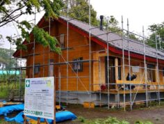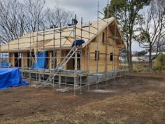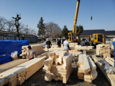 16日に荷下ろししてチーム高原一丸で5日間で屋根までかけて、