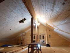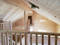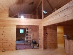 弊社は平屋でもなるべくロフトに階段でいけるように設計させていただいているんですよ。使いやすいですからね。 シベリアパインのハイブリッドログハウス。 完成が楽しみです。
