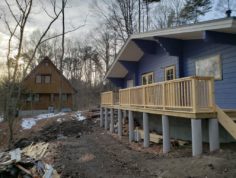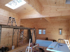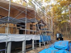 建て方工事ではログ積みが終わり垂木がかかりました!