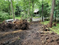 黒土という地盤状況やここ最近の長雨で地面が柔らかくなっており、大きめの石を補強して道をつけるご相談をK様とさせていただきました。