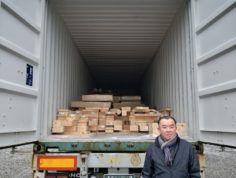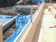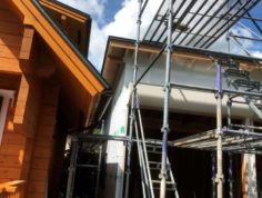 建て方工事が始まり、仮床をつくりログ2段が積まれました!