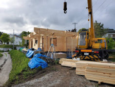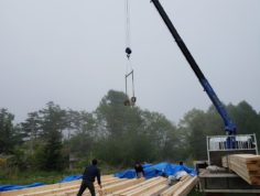 ログ積み終了から屋根がかかるまでスピーディーな流れで屋根がけができるところが強みです。