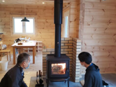 あいにくの雨で肌寒かったですが、1時からお引き渡し、3時から薪ストーブ導入したヤマショーのスタッフによる試運転、ご説明にて室内がより暖かく感じられましたよ。