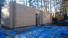 8日に荷下ろし、昨日でログ壁15段まで積み上げました!!