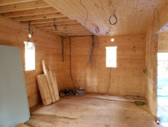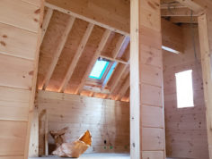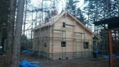 建て方工事は先週終わりまして、造作と電気工事の段取りに進みました。