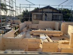 今回弊社はログキットの販売と建て方のお手伝いというお仕事でして、工事の請負は地元の以奈場木材さんという形になりますよ。