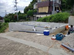 基礎工事が完了し、本日水道屋さんが外回りの工事しています。
