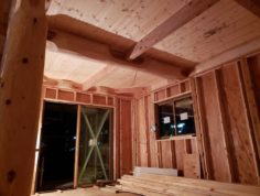 軒裏天井と室内天井も施工終えました。 来週から屋根屋西山さんが屋根板金工事に入ります。