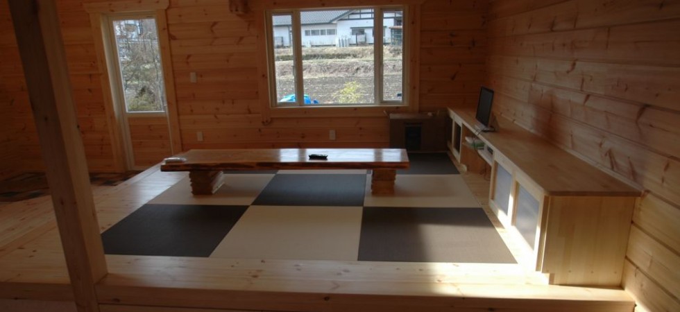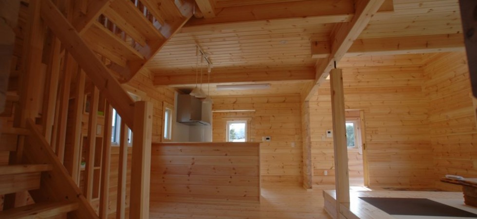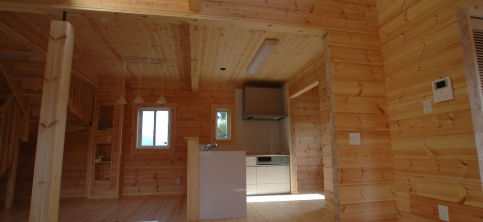 Y様は高原都市スタッフ野口展孝と同級生になります。 奥様がマイホームがほしいという強い願望でY様は一発奮起してログハウスを建築。 奥様が建てるならログハウスがいいということで弊社を選んでいただいた経緯があります。 間取りはY君と私とで相談して進めさせていただきました。 太陽光を10kWのせたいということで屋根形状は南傾斜の片流れ屋根プランに決定しました。 太陽光はセルフキットにて自分で施工。 屋根一面にのる太陽光パネルは圧巻ですね。 リビングは和テイストを取り入れた小上がり。 キッチン後ろにはパントリーがあり大容量の収納もできました。 1階には客間。 2階には寝室と子供2部屋あり家族4人が暮らすには十分な広さとなりました。 Y様は長野県の薪ストーブ屋さんに勤めているので煙突もセルフ施工。 これから薪ストーブを入れる予定です。