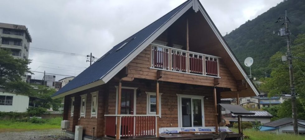 K様邸は弊社でフィンランドからログ材を輸入し基礎・ログ組み・屋根がけ・水道工事を請け負い、