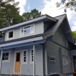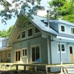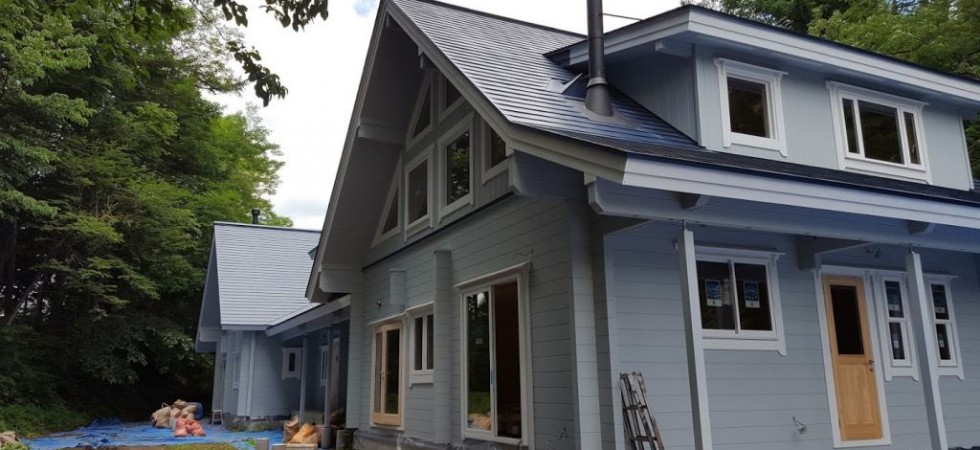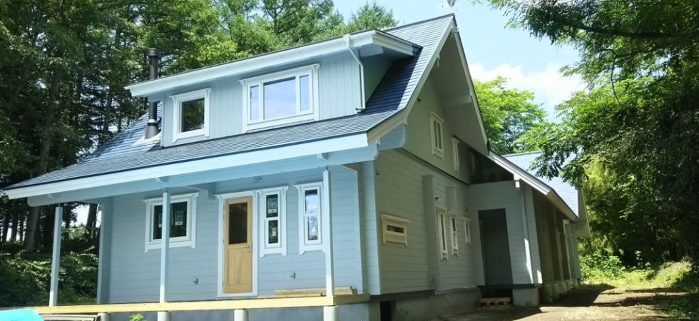 窓は木製サッシと樹脂サッシを使い分けており、造作はハーフビルド。外部塗装と床張り、キッチンなど設備器具もお客様のセルフ施工!! お洒落ですよ~。