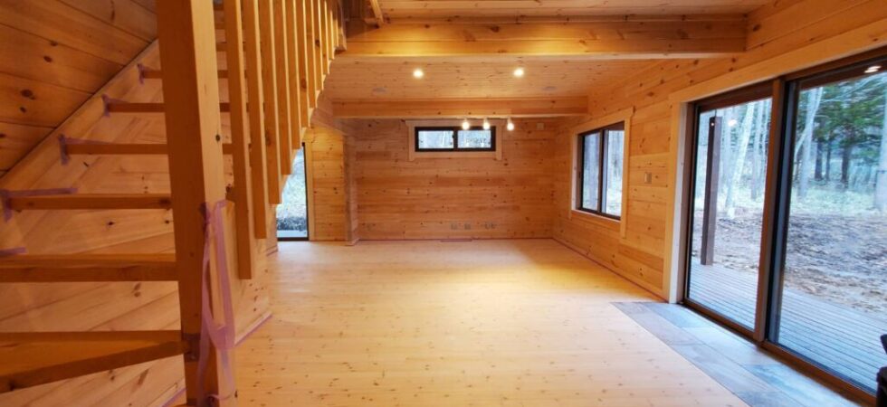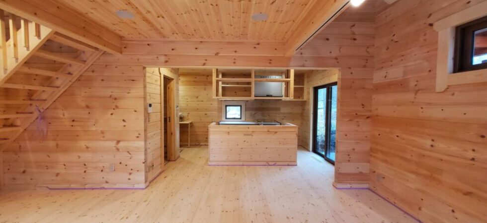 T様邸は32坪、水回りや床下エアコンなど お施主様のこだわりが詰まったログハウスになります。