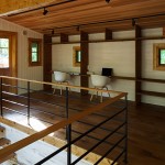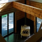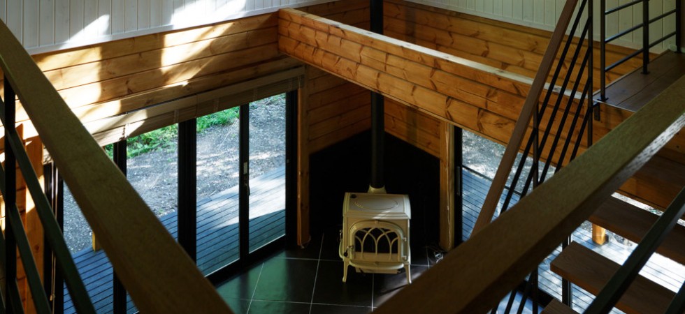 1階はログ構造、2階はツーバイ工法のログハウスです。